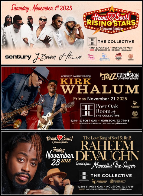 Get ready for three incredible nights of live music at The Community Collective for Houston, featuring legendary R&B and jazz artists.