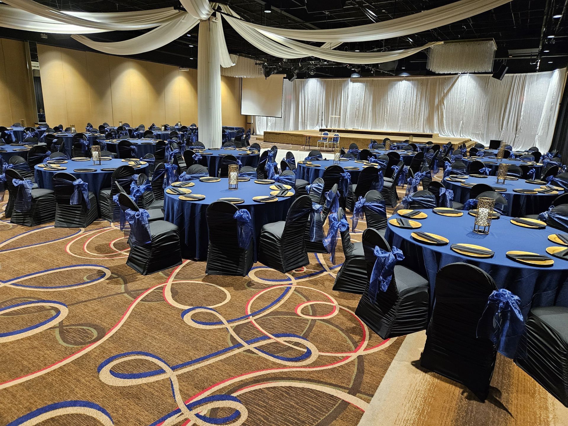 Your event includes use of our South Wing Ballroom and Foyer for both days, offering ample space for audience seating, registration, mingling, and breakout moments.